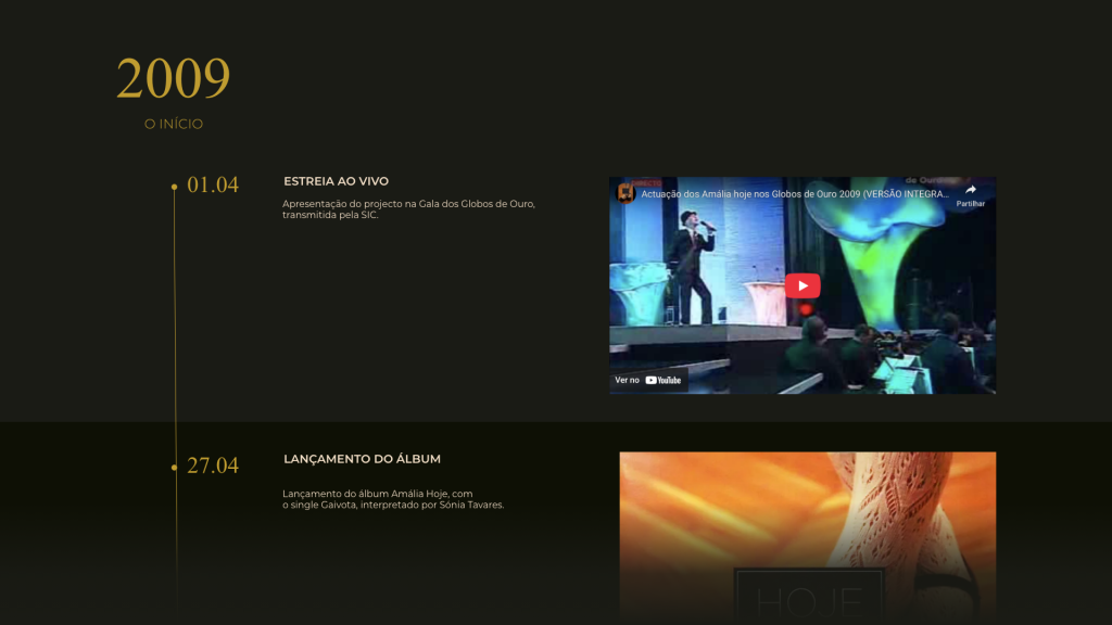 Este site vai além de ser um simples arquivo; é uma plataforma interativa e promocional, concebida a pensar não só no público que os Hoje têm vindo a conquistar ao longo dos anos, mas também nas novas gerações que, de outra forma, jamais conheceriam o repertório de Amália Rodrigues.